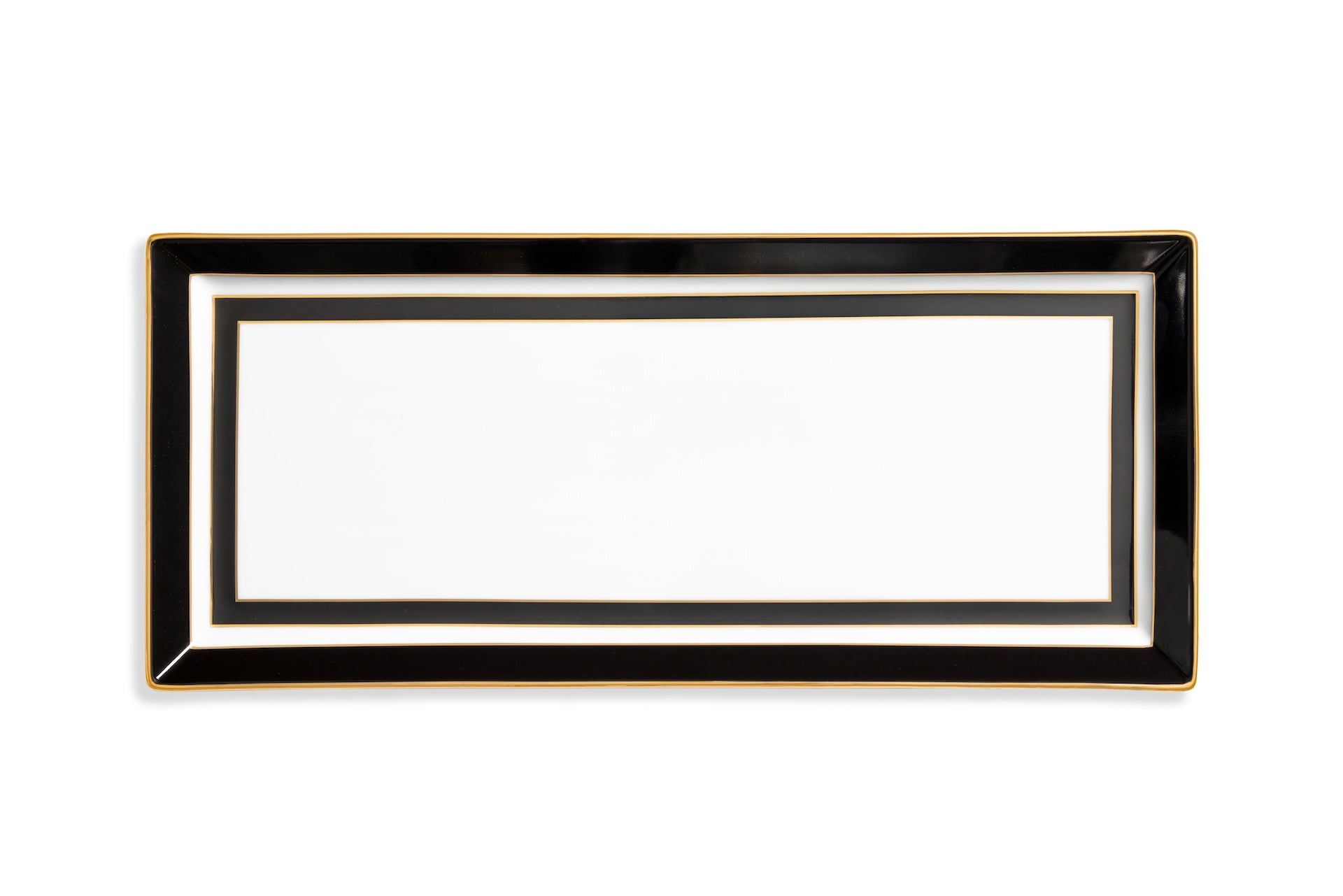 Sleek, refined, and endlessly versatile. Crafted in fine porcelain with bold black borders and a delicate gold rim, the Eternal Noir Serving Platter turns any spread into a statement. Perfect for presenting hors d’oeuvres, cheeses, or desserts, it’s an elegant essential for both intimate dinners and grand gatherings.